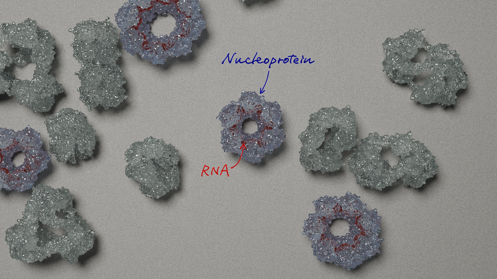 Figure: Conceptual overview of this study. By analyzing many complex states, the research group identified the structure of the nucleoprotein–RNA complex.